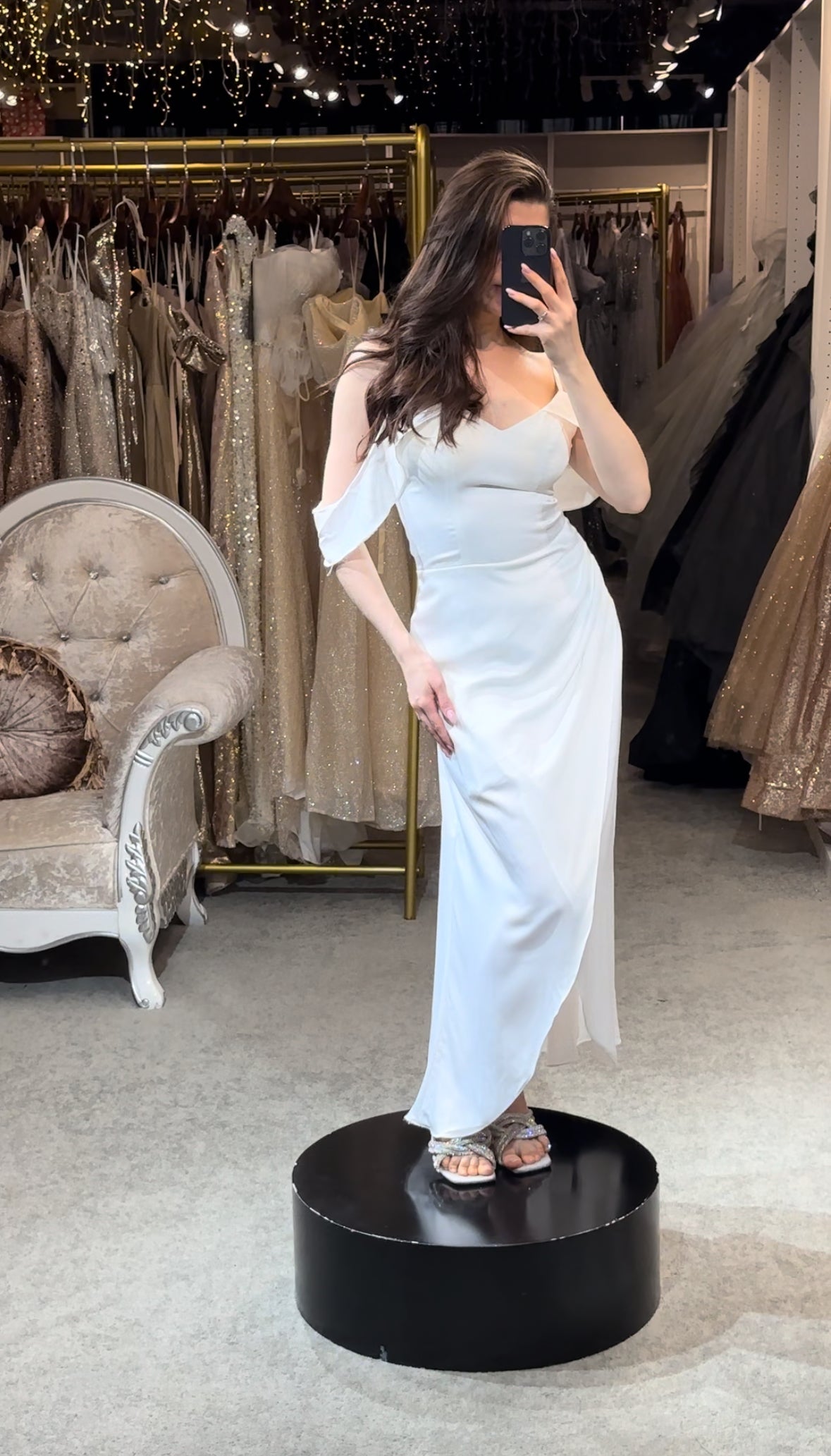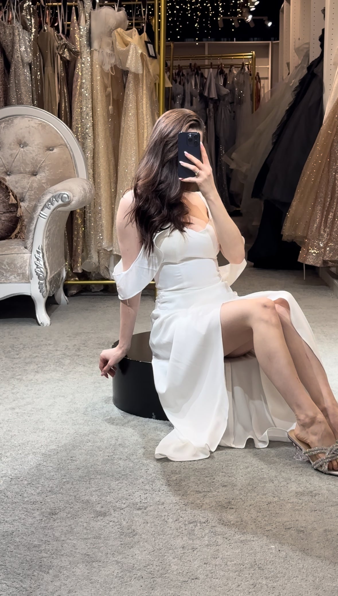 Step into a space designed for comfort and luxury. Our fitting rooms offer soft, cozy seating areas for you and your guests, along with an assortment of shoes to complement your dresses. Our curtains curate a private and safe environment, while our luxurious carpet and lighting ensure you feel pampered as you search for your dream gown. Book your appointment today and visit us to create a truly unforgettable experience.