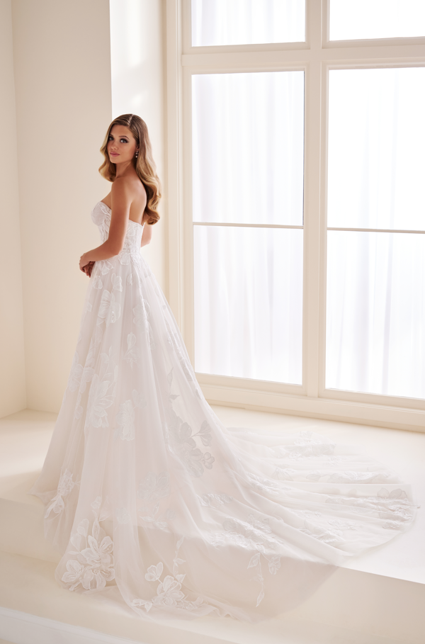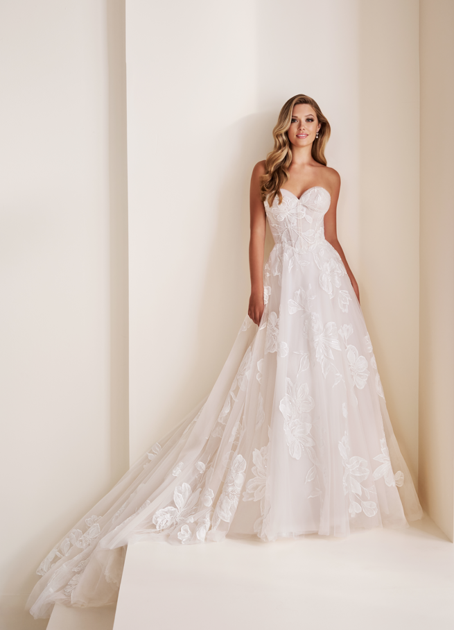 As a Mon Cheri brand, Martin Thornburg offers sophisticated, couture-inspired wedding dresses. Known for impeccable fit and timeless designs, this collection provides options that flatter every figure while exuding luxury and grace.