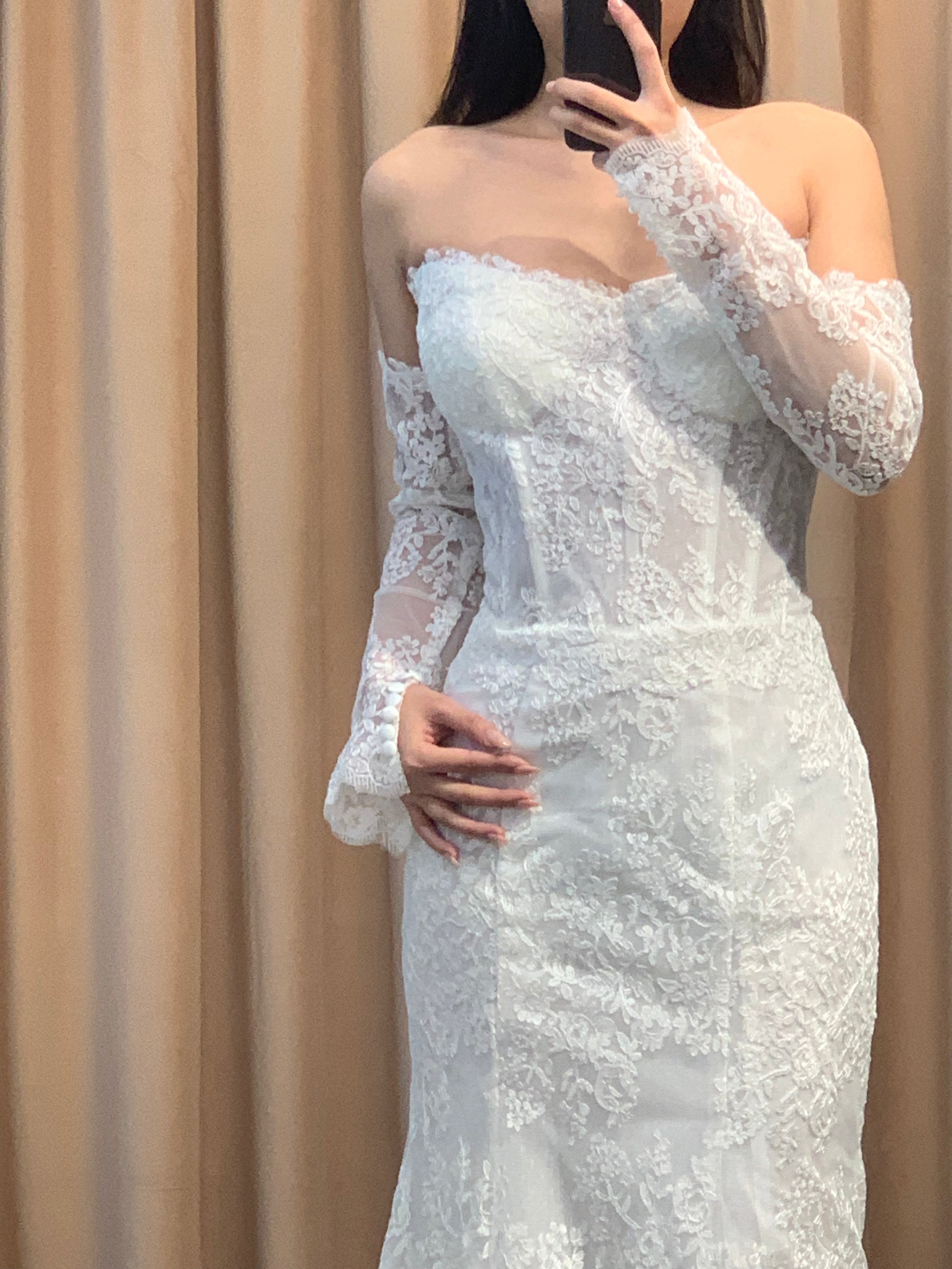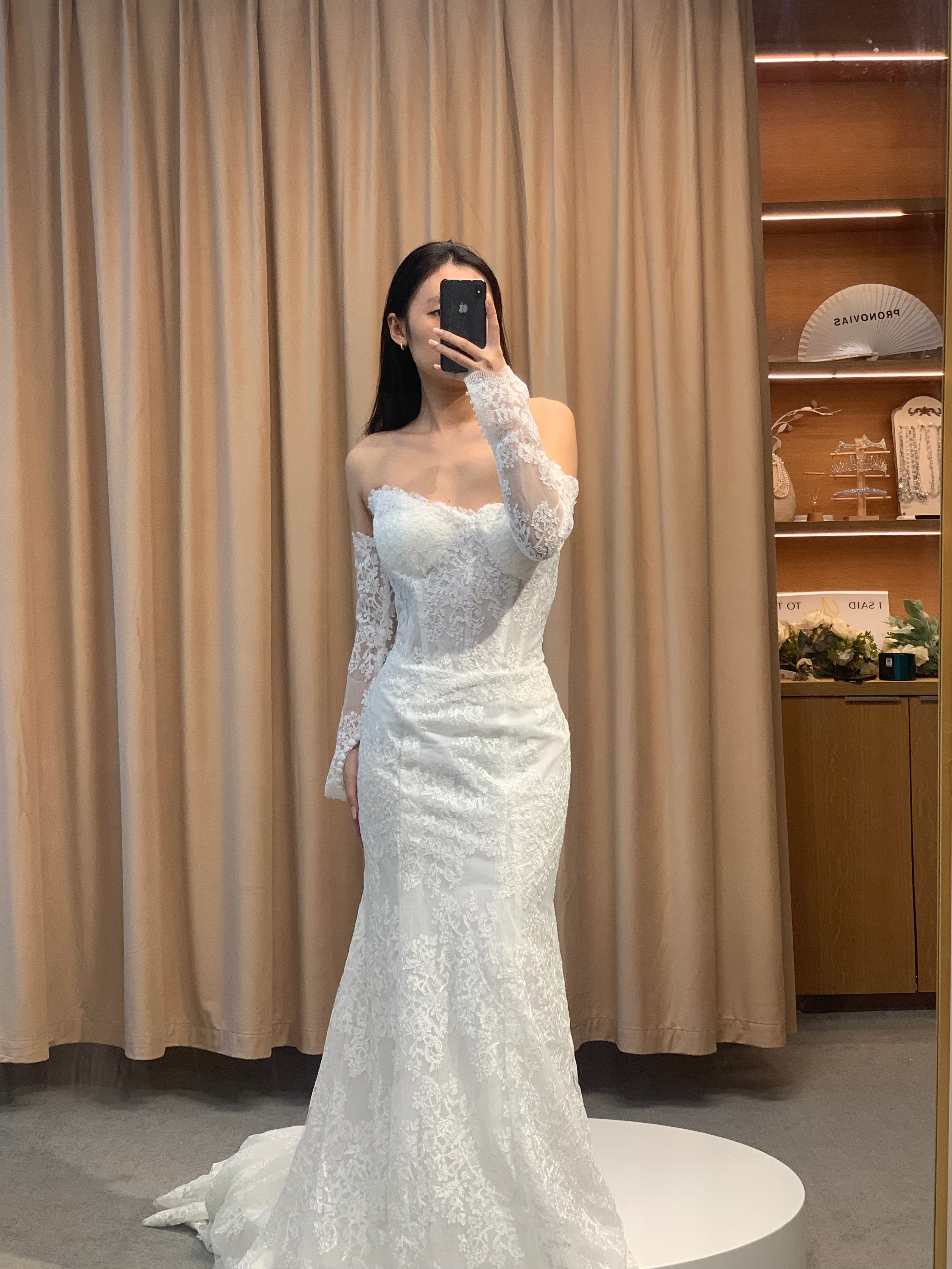 Versatile and breathtakingly romantic. This figure-sculpting mermaid gown features a sweetheart neckline and is crafted from intricate lace. The detachable long sleeves offer two looks in one, while the lace-up back adds a final touch of adjustable, sensual elegance.
