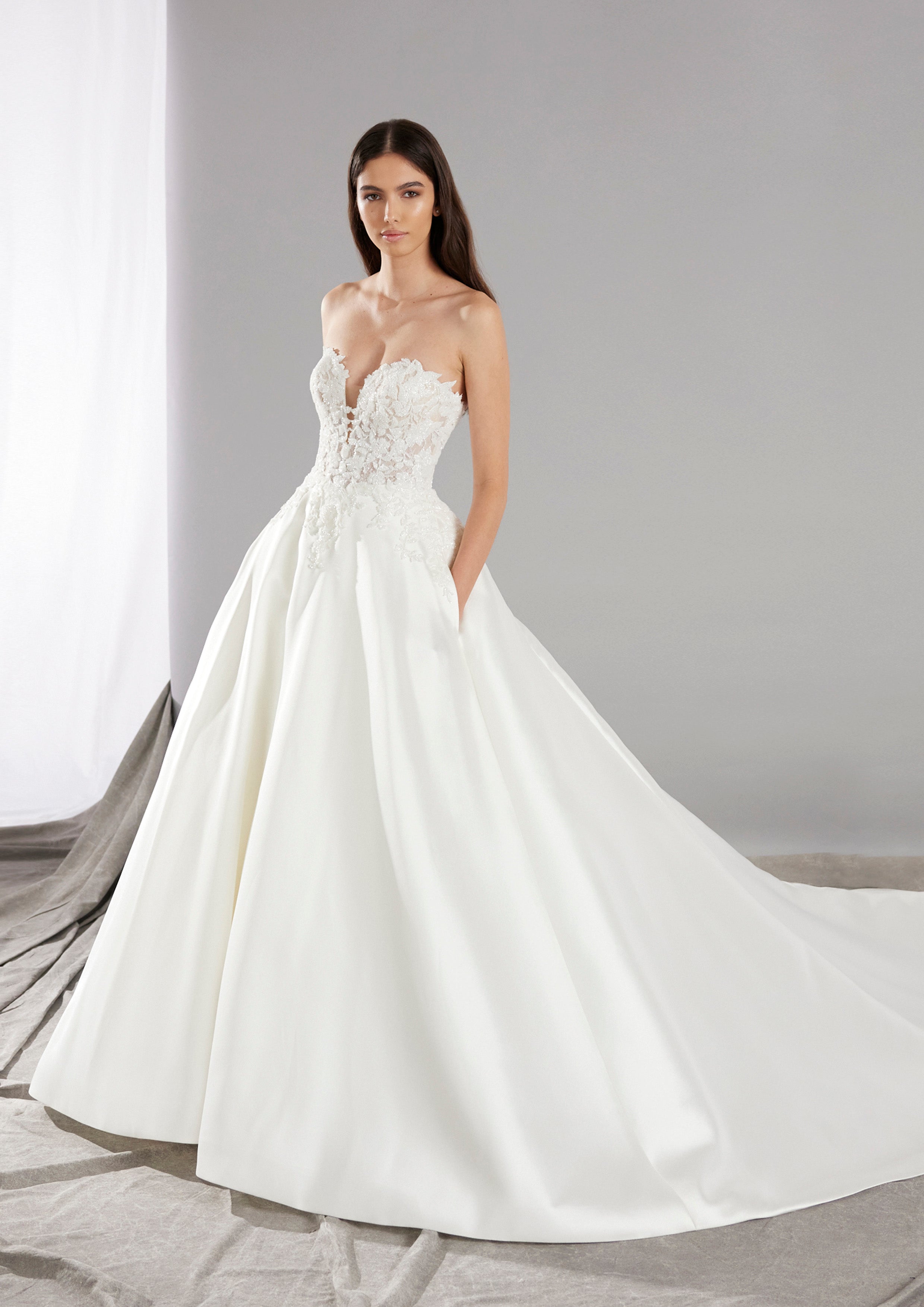 Hailing from Barcelona, Pronovias is a global leader in bridal fashion. With over 50 years of experience, the brand is known for its beautifully tailored gowns that range from classic elegance to contemporary chic. Pronovias gowns cater to brides seeking sophistication and versatility.