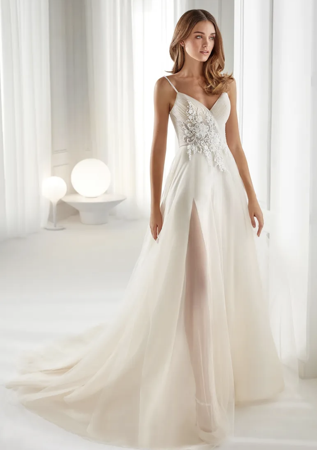 Nicole Milano blends Italian craftsmanship with contemporary design, offering romantic mermaid and princess wedding dresses. Their collections feature luxurious fabrics like tulle, Mikado, chiffon, and crepe, catering to modern brides seeking elegance.