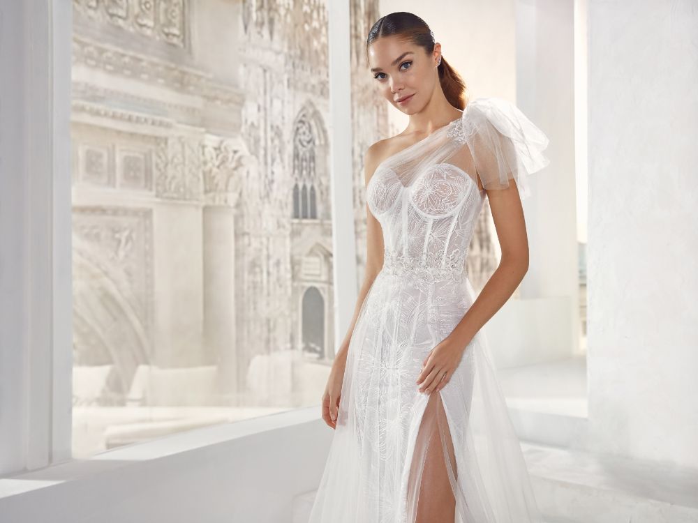 Nicole Milano blends Italian craftsmanship with contemporary design, offering romantic mermaid and princess wedding dresses. Their collections feature luxurious fabrics like tulle, Mikado, chiffon, and crepe, catering to modern brides seeking elegance.