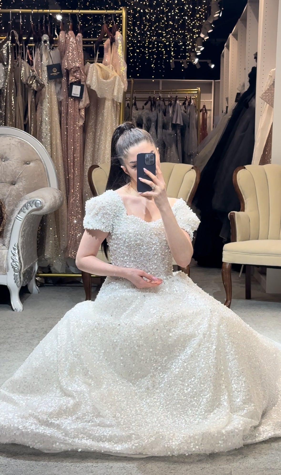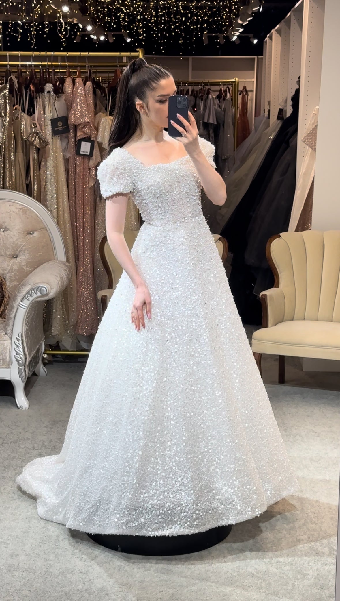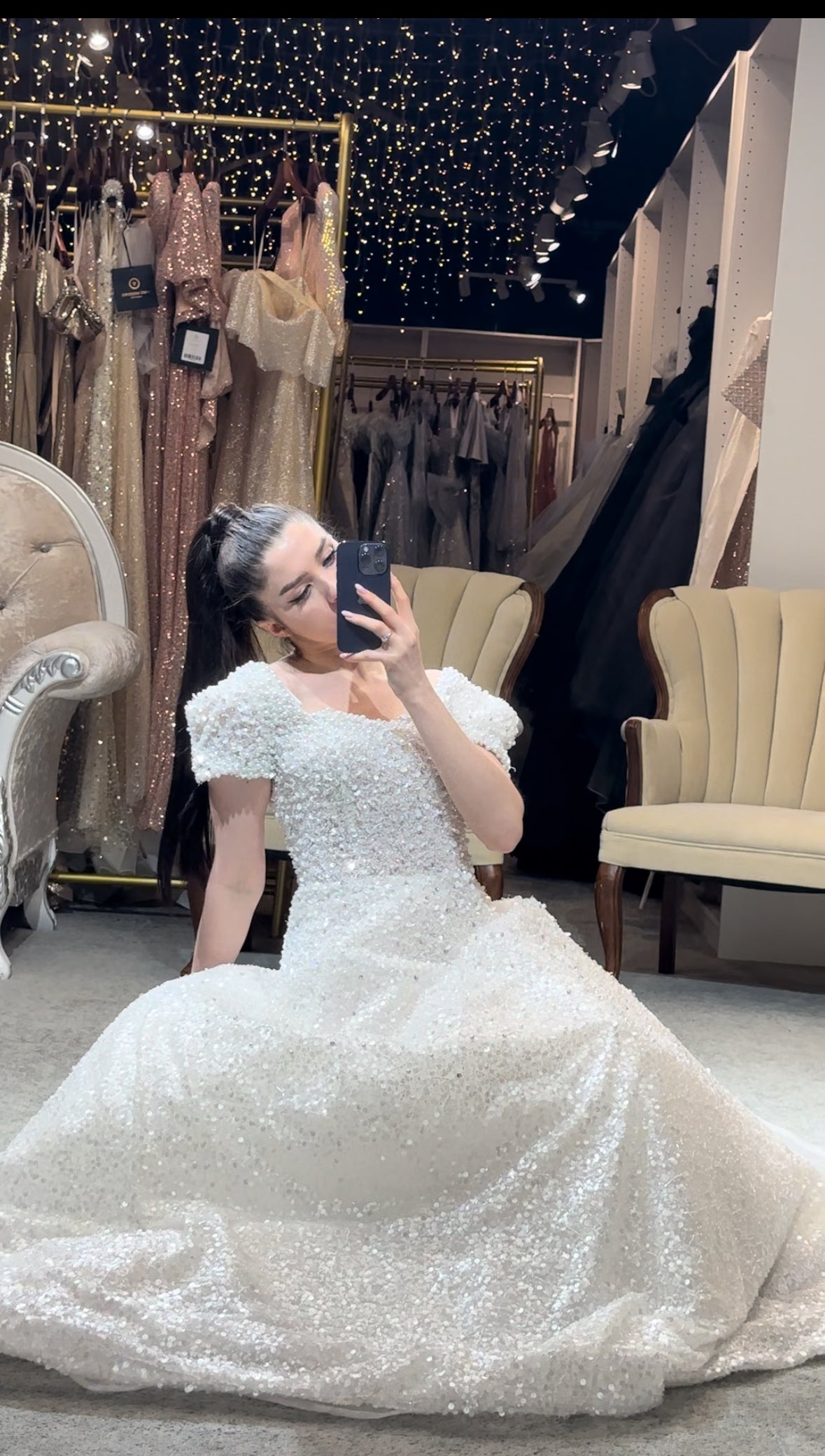Step into a space designed for comfort and luxury. Our fitting rooms offer soft, cozy seating areas for you and your guests, along with an assortment of shoes to complement your dresses. Our curtains curate a private and safe environment, while our luxurious carpet and lighting ensure you feel pampered as you search for your dream gown. Book your appointment today and visit us to create a truly unforgettable experience.