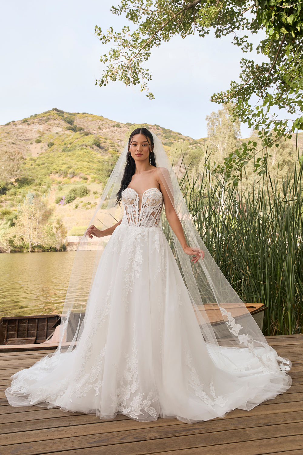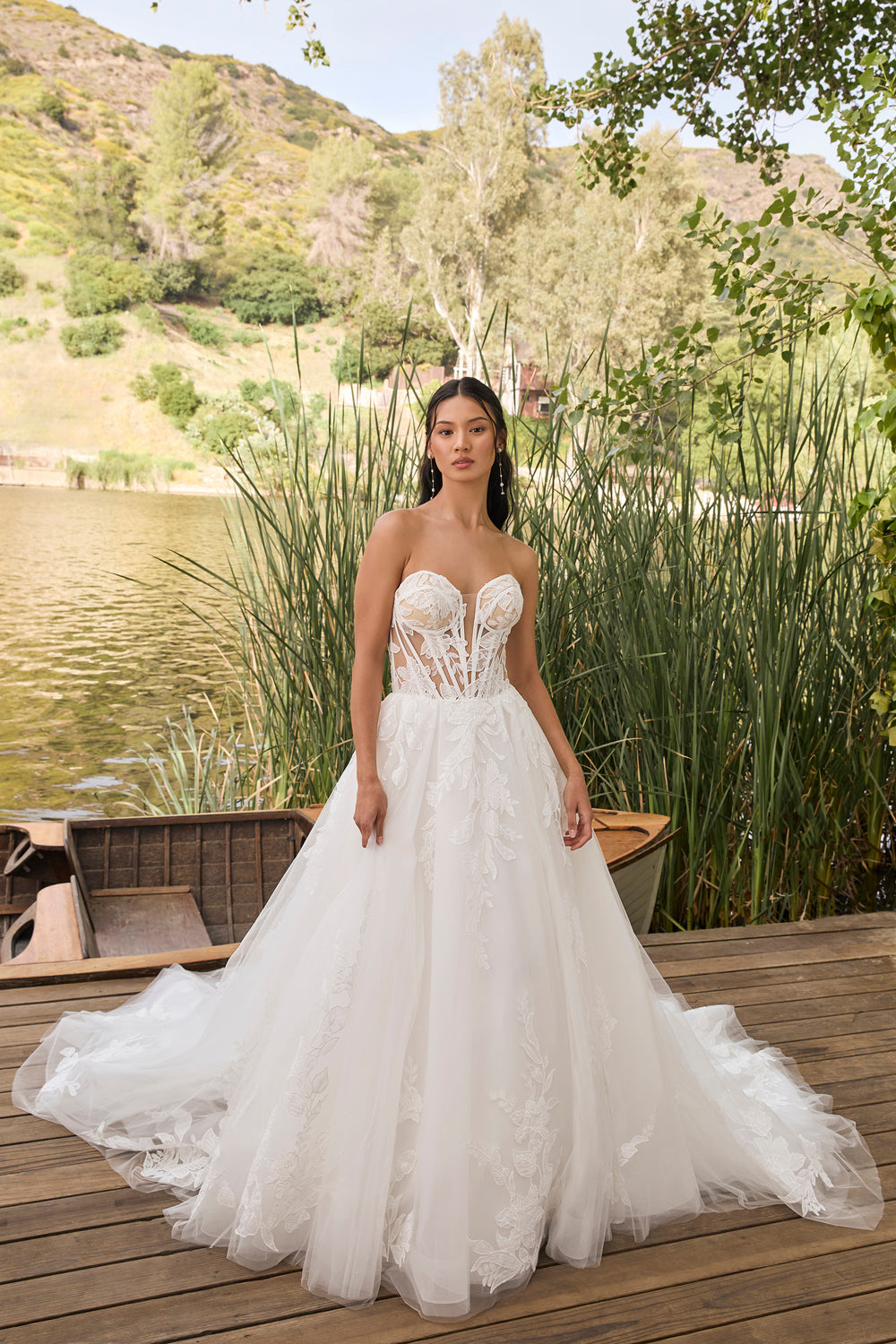 Make a bold and elegant statement on your wedding day in this stunning strapless gown, designed to blend romance with modern sophistication. The sweetheart neckline adds a touch of timeless charm, beautifully framing your décolletage and enhancing your natural beauty. The bodice features structured boning for a sleek and supportive fit, while the sheer, see-through design adds a hint of allure and contemporary flair.