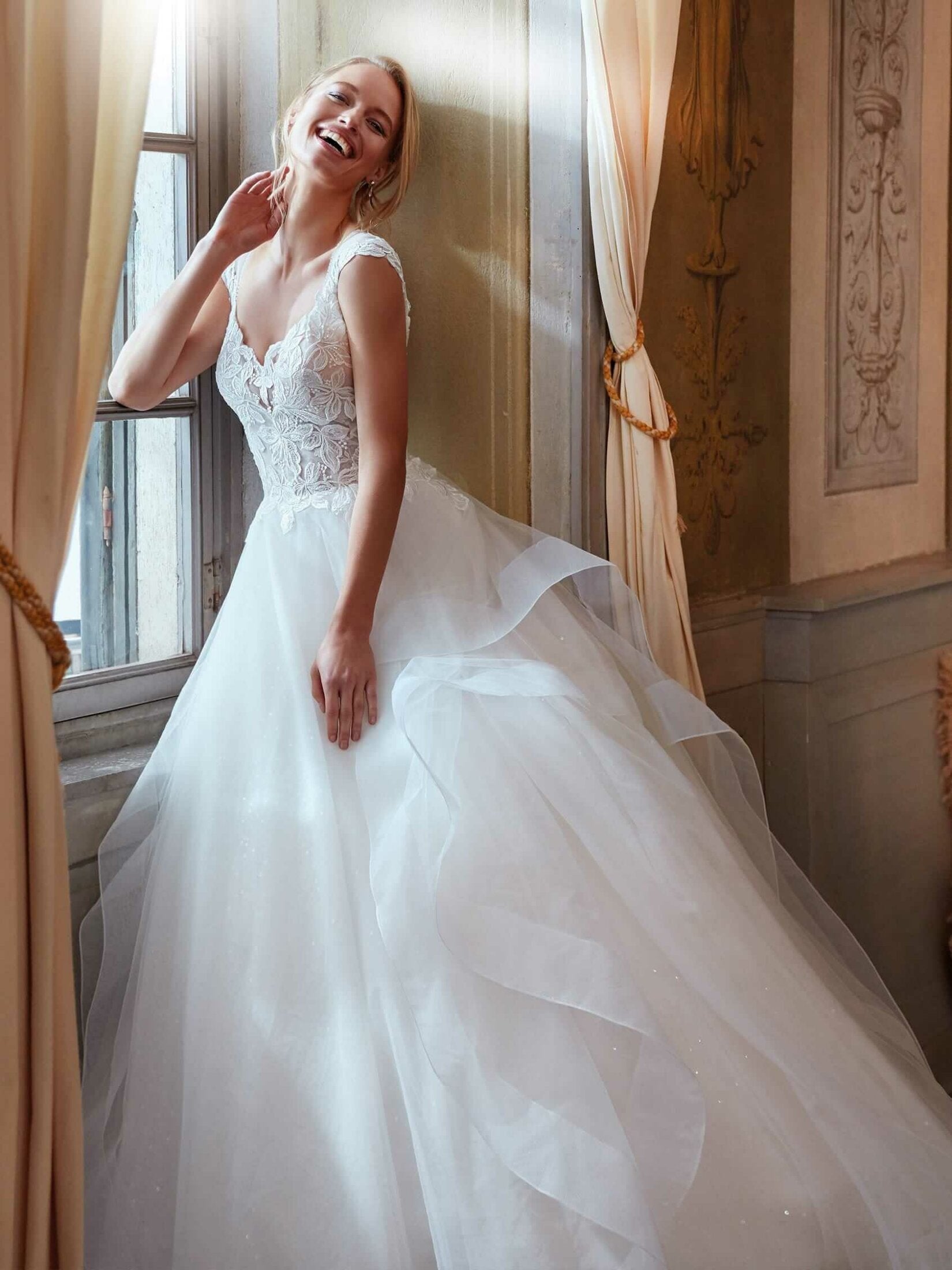 Nicole Milano blends Italian craftsmanship with contemporary design, offering romantic mermaid and princess wedding dresses. Their collections feature luxurious fabrics like tulle, Mikado, chiffon, and crepe, catering to modern brides seeking elegance.
