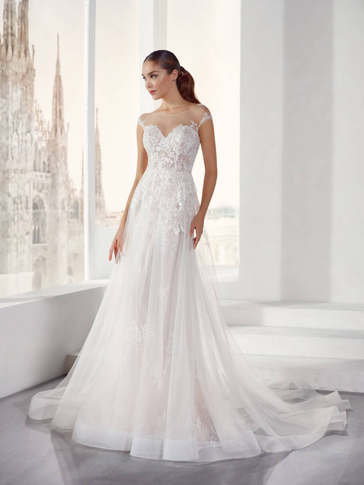 Nicole Milano blends Italian craftsmanship with contemporary design, offering romantic mermaid and princess wedding dresses. Their collections feature luxurious fabrics like tulle, Mikado, chiffon, and crepe, catering to modern brides seeking elegance.